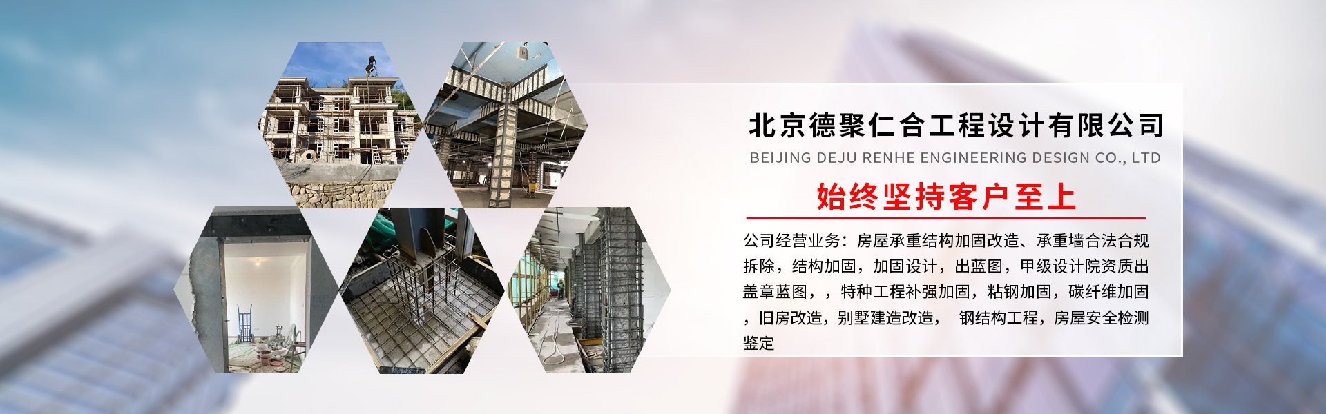 北京德聚仁合工程设计有限公司,我公司是一家专业从事建筑加固改造、改扩建及钢结构项目的技术性工程公司。公司经营业务包括:房屋承重结构加固改造、承重墙合法合规拆除,结构加固,加固设计,出蓝图,甲级设计院资质出盖章蓝图,,特种工程补强加固,粘钢加固,碳纤维加固,旧房改造,别墅建造改造,